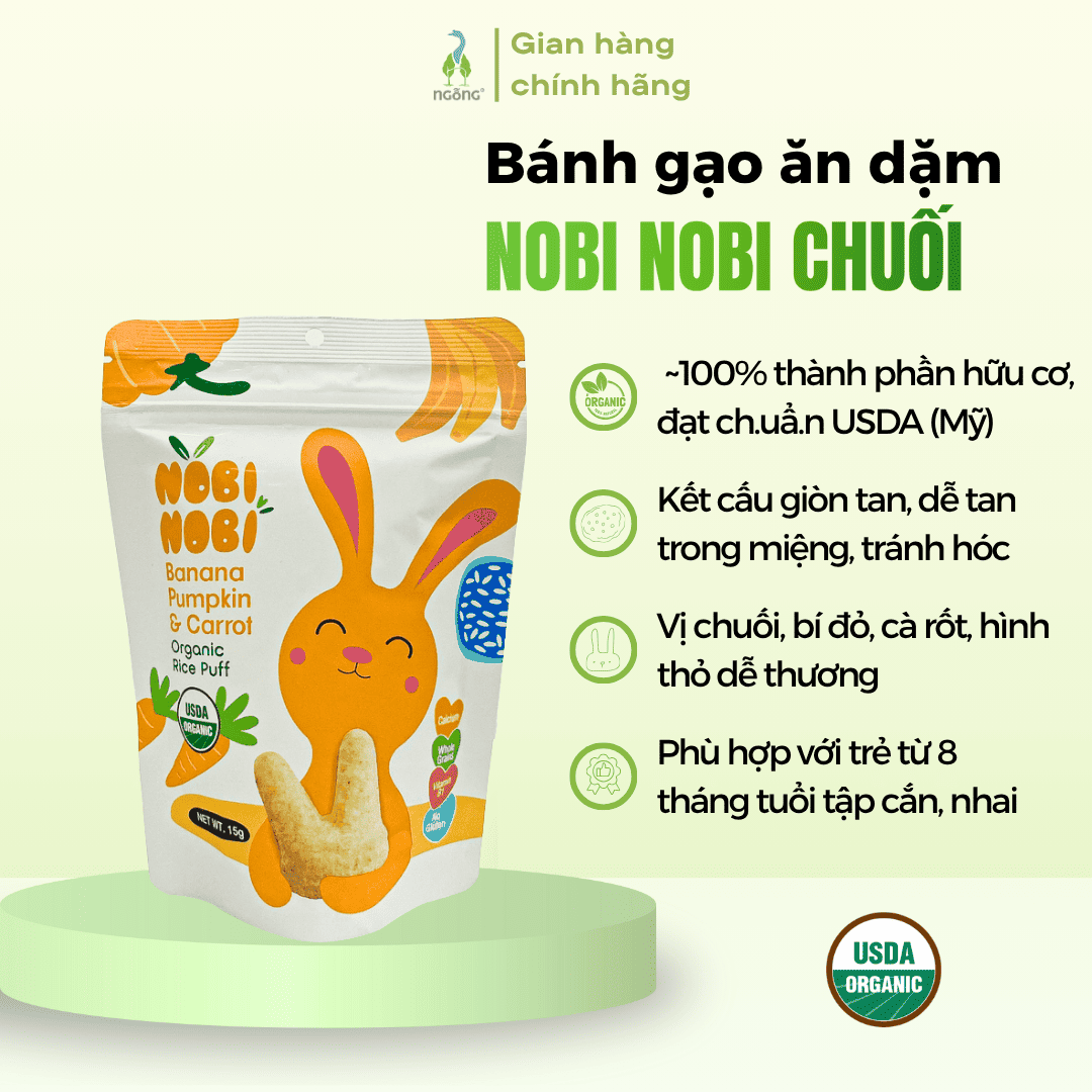 Bánh gạo ăn dặm Nobi Nobi 3 vị cho trẻ 8 tháng+ 15g