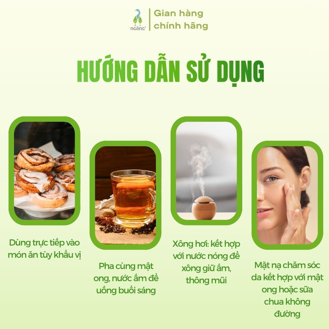 Dùng trực tiếp với liều lượng phù hợp trong món ăn, đồ uống