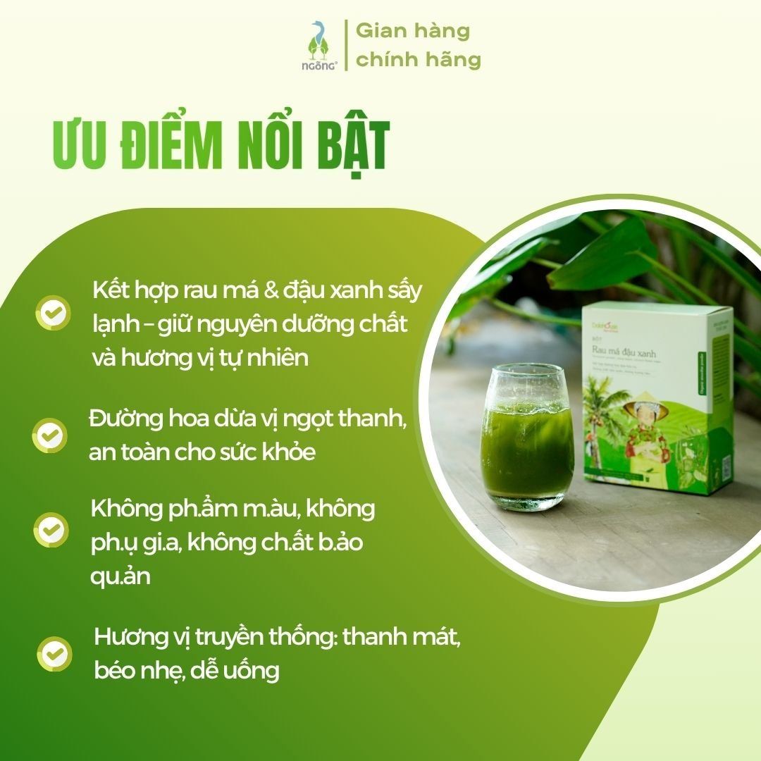Thành phần: Rau má sấy lạnh, đậu xanh sấy lạnh, đường hoa dừa tự nhiên