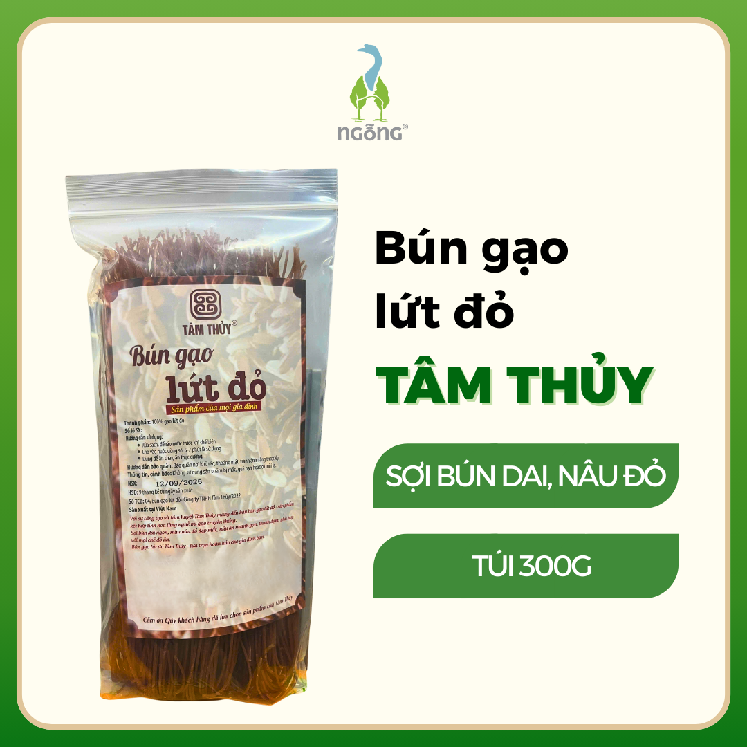 Bún gạo lứt đỏ Tâm Thủy được làm từ 100% gạo lứt đỏ nguyên chất, không pha tạp, giữ trọn giá trị dinh dưỡng tự nhiên. Sợi bún có màu nâu đỏ đặc trưng, dẻo dai, thơm ngon, khi nấu không bị bở nát, mang lại bữa ăn thanh đạm nhưng vẫn đủ năng lượng.