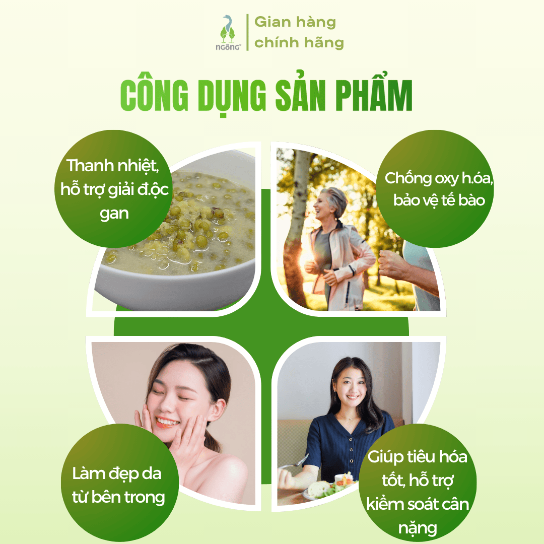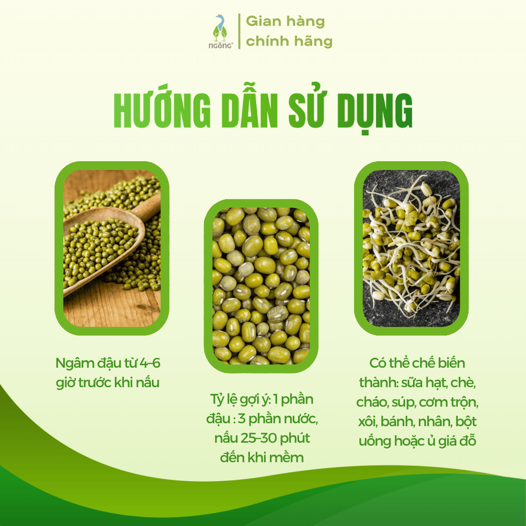 Sản phẩm đa dụng: nấu chè, cháo, súp, cơm trộn, xôi, bánh, làm nhân, xay bột uống hoặc ủ giá đỗ tại nhà. Ngoài ra, đậu xanh còn giúp thanh nhiệt, giải độc gan, làm mát cơ thể, hỗ trợ tiêu hóa và làm đẹp da tự nhiên.