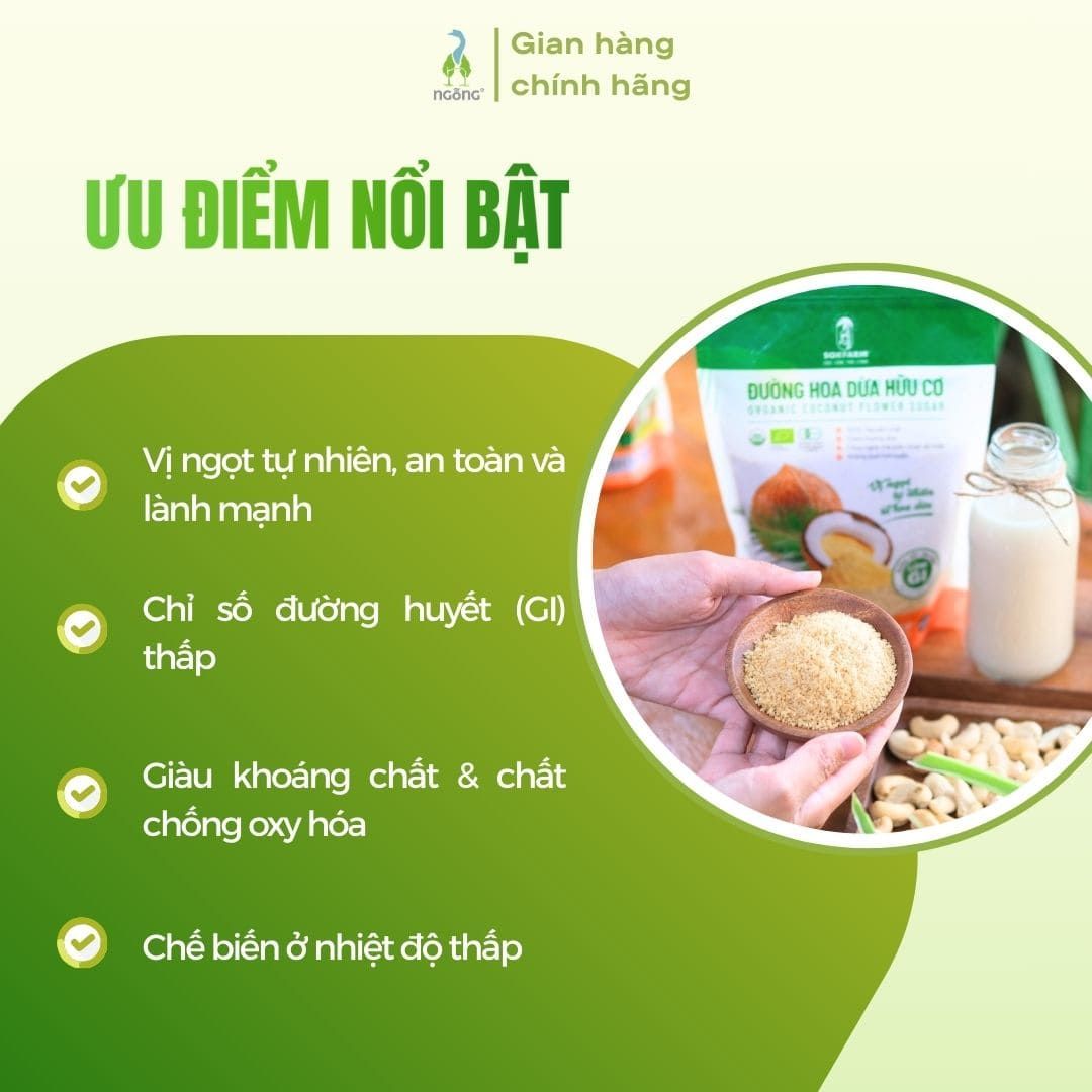 2. Ưu điểm nổi bật của Đường mật hoa dừa Sokfarm hữu cơ