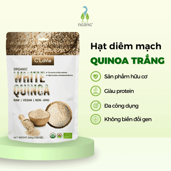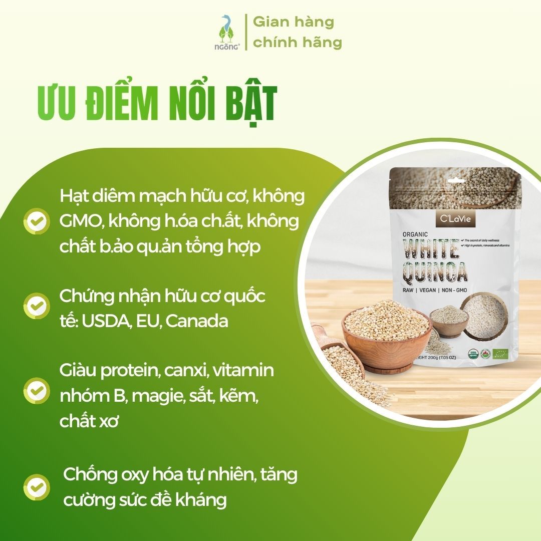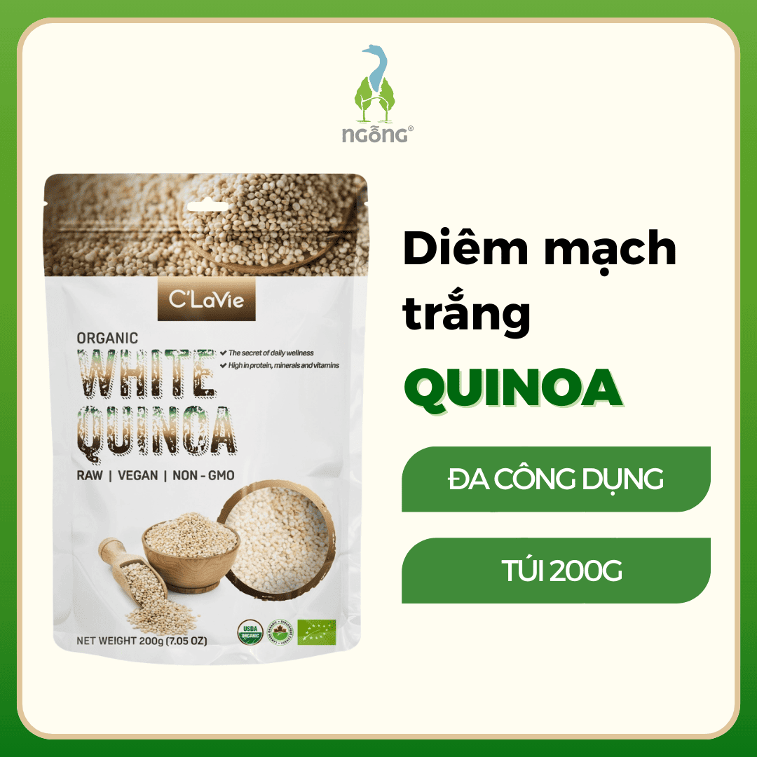 Hạt diêm mạch hữu cơ C’LaVie quinoa trắng 200g – nguồn dinh dưỡng thuần khiết, giàu protein, khoáng chất và chất xơ, lựa chọn hoàn hảo cho chế độ ăn uống cân bằng, eat clean và lành mạnh. Cảm ơn bạn đã chọn mua sản phẩm tại Ngỗng!