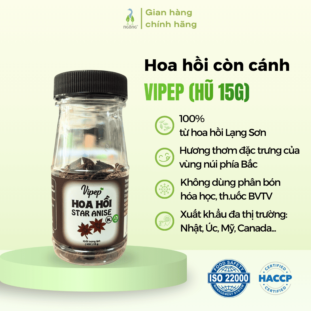 Hoa hồi khô Vipep nguyên cánh hũ 15g