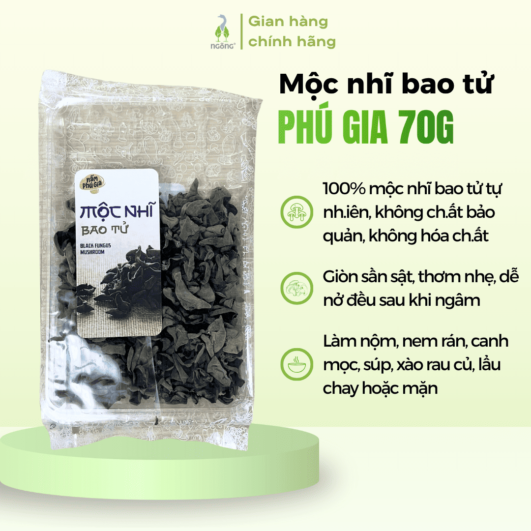 Mộc nhĩ khô Nấm Phú Gia bao tử/nguyên cái/thái sợi 70g - 100g - 150g