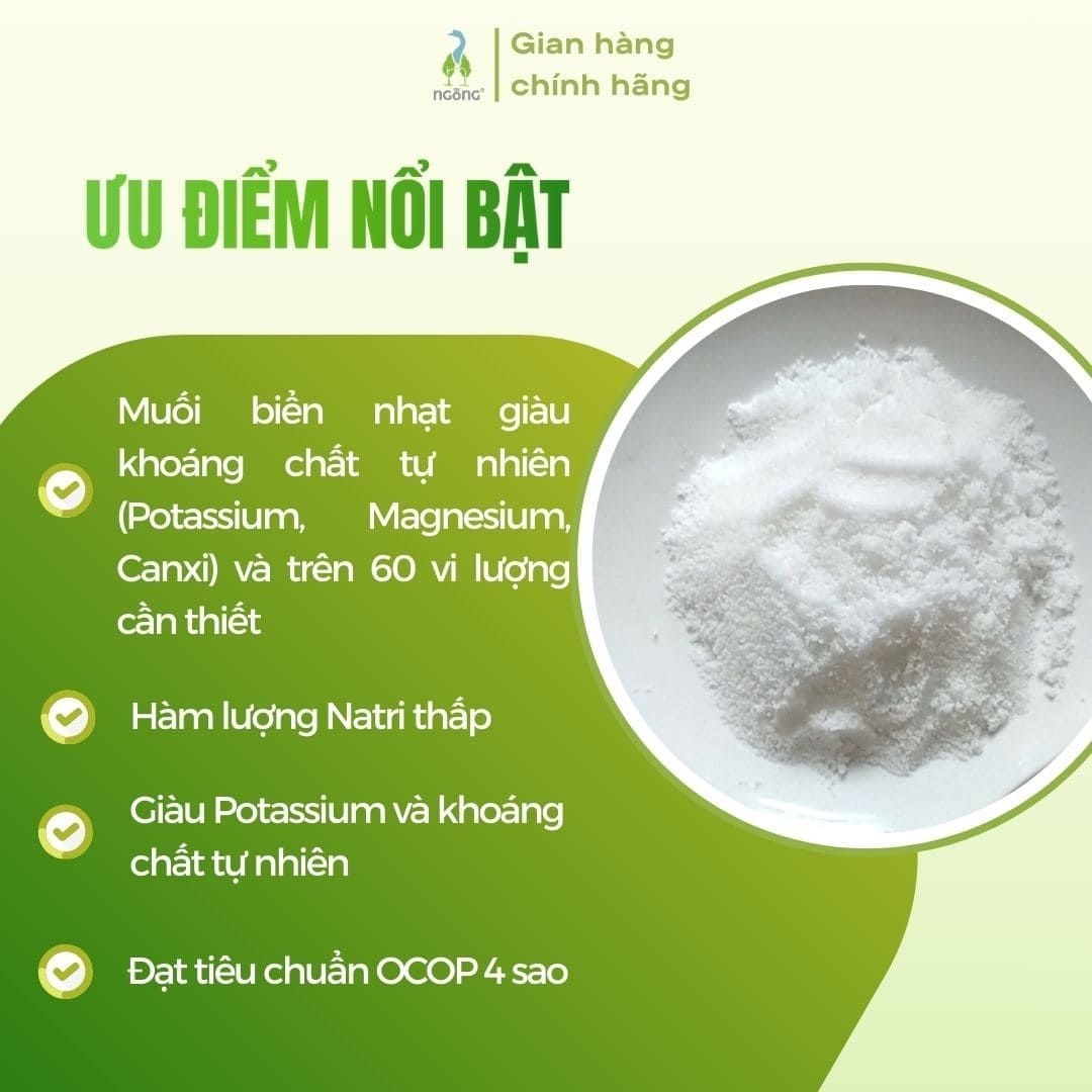 Muối biển nhạt là loại muối tự nhiên có hàm lượng Natri thấp hơn 30% so với muối thông thường, nhưng giàu khoáng chất tự nhiên như Potassium, Magnesium, và Canxi, giúp bảo vệ sức khỏe.