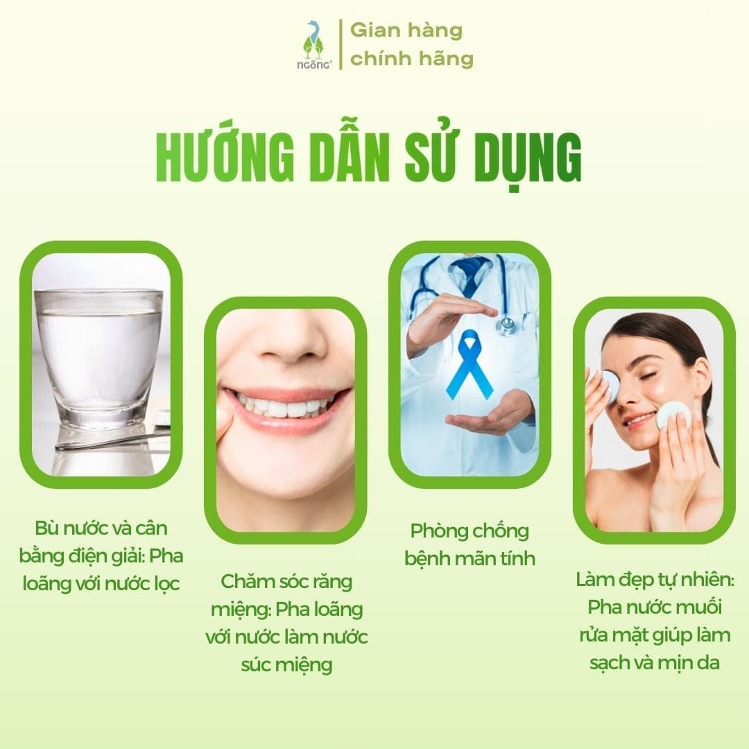 Có thể sử dụng Muối biển nhạt Royal NSC trong pha nước bù điện giải, súc miệng ngừa sâu răng, hoặc làm đẹp tự nhiênKhông chất bảo quản: