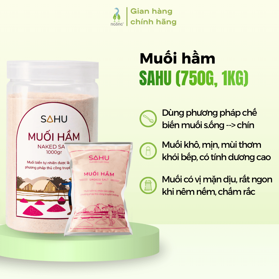 Muối hầm Sahu là sản phẩm muối biển tự nhiên, chế biến thủ công theo phương pháp truyền thống của người Việt. Muối hột được nung trong nồi đất sét ở nhiệt độ cao, tạo ra hạt muối khô, mịn, thơm khói bếp đặc trưng và mang tính dương cao theo thực dưỡng.