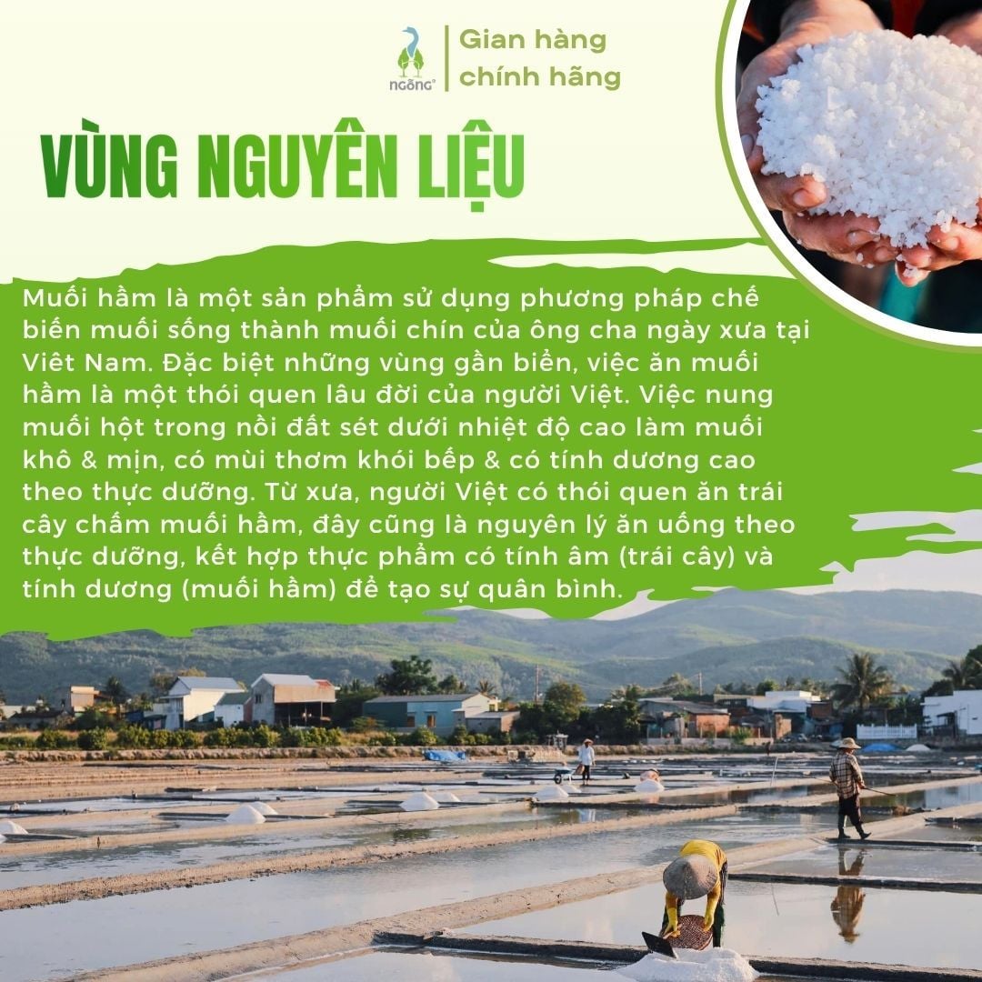 Với vị mặn dịu, hậu ngọt, muối hầm không chỉ dùng để nêm nếm, rắc trực tiếp mà còn đặc biệt ngon khi chấm trái cây – sự kết hợp âm dương cân bằng trong ẩm thực Việt. Đây là lựa chọn tự nhiên, an toàn và giàu giá trị truyền thống cho bữa cơm gia đình.