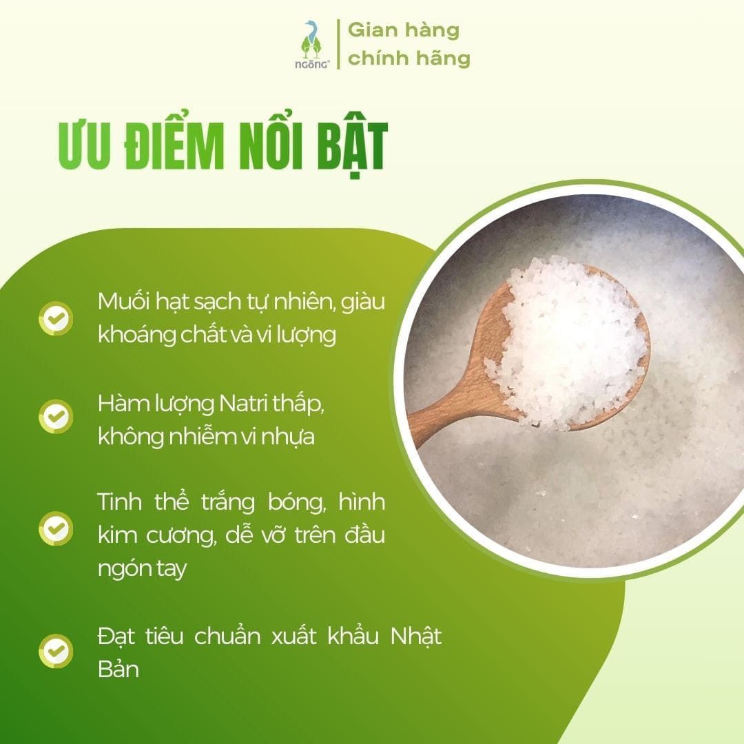 Thành phần: 100% muối hạt sạch tự nhiên, giàu khoáng chất và vi lượng