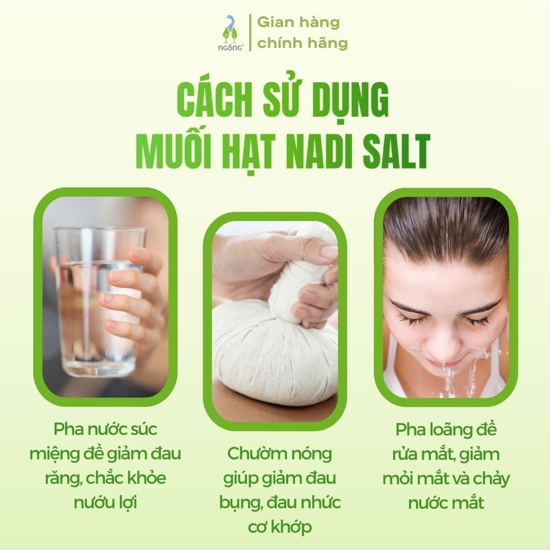 Muối Nadi Salt NSC chủ yếu được sử dụng để chườm nóng, rửa mắt, súc miệng hoặc làm liệu pháp tự nhiên. Nếu cần uống do nhức đầu, cảm nắng, bạn phải pha thật loãng thánh dung dịch muối nhạt & uống dần/uống hớp thật nhỏ trước (chú ý không uống ngụm lớn nếu chưa quen). Tuy nhiên, để đảm bảo an toàn, bạn vẫn nên xin ý kiến bác sỹ/chuyên gia trước khi sử dụng.