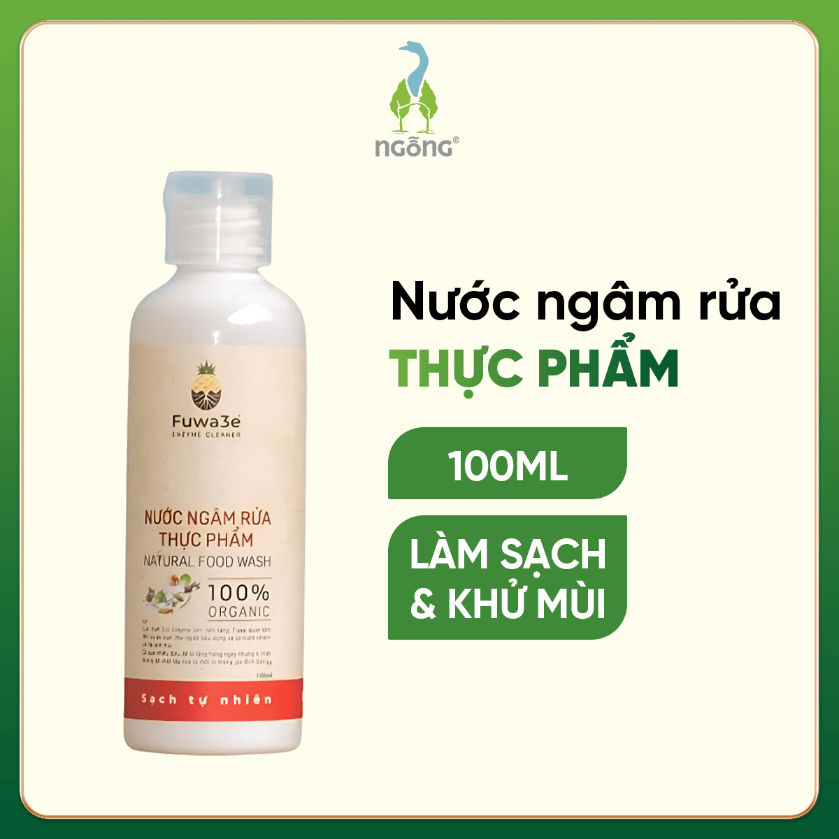 Ngỗng trân trọng giới thiệu Nước ngâm rửa thực phẩm Fuwa3e, giải pháp làm sạch thực phẩm hiệu quả, an toàn và thân thiện với môi trường. Được chiết xuất 100% từ enzyme sinh học tự nhiên lên men từ dứa, sản phẩm không chỉ loại bỏ dư lượng thuốc bảo vệ thực vật mà còn giúp thực phẩm giữ nguyên độ tươi ngon, mang lại sự yên tâm tuyệt đối cho gia đình bạn.