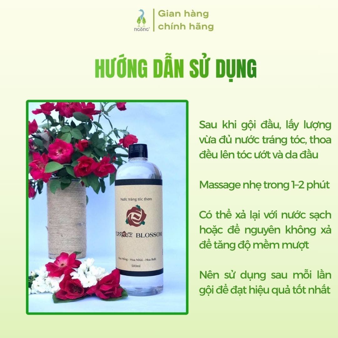 Sau khi gội đầu, lấy lượng vừa đủ nước tráng tóc, thoa đều lên tóc ướt và da đầu