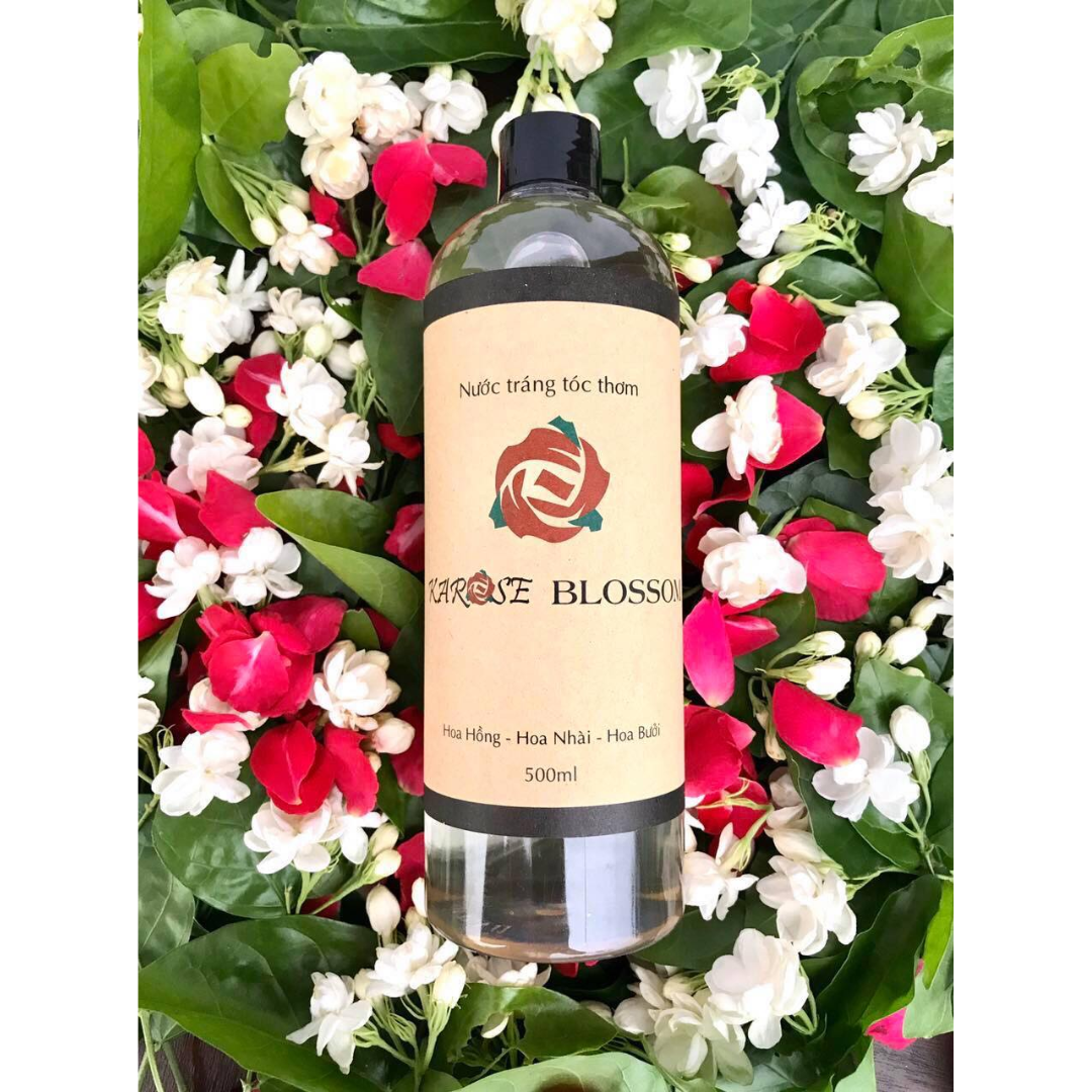 Nước tráng tóc Karose Blossom 500ml - lựa chọn chăm sóc tóc sạch lành, mềm mượt và thơm mát từ tinh chất hoa tươi mỗi ngày.