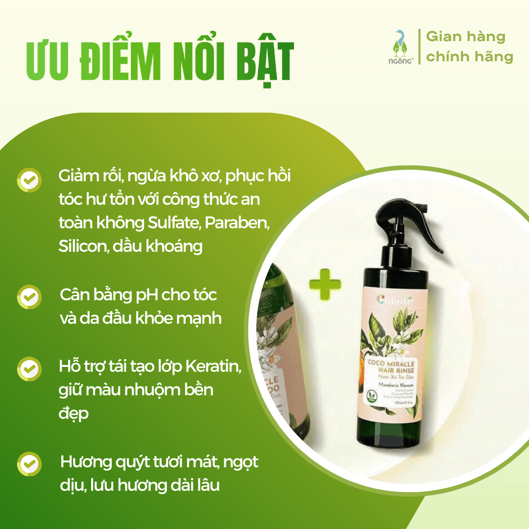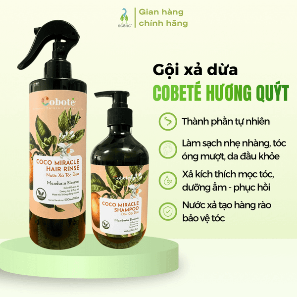 Nước xả dừa hương quýt Coboté Miracle Hair Rinse 500ml – lựa chọn tự nhiên cho mái tóc mềm mượt, óng ả, lưu hương quýt sảng khoái suốt ngày dài. Cảm ơn bạn đã chọn mua sản phẩm tại Ngỗng!