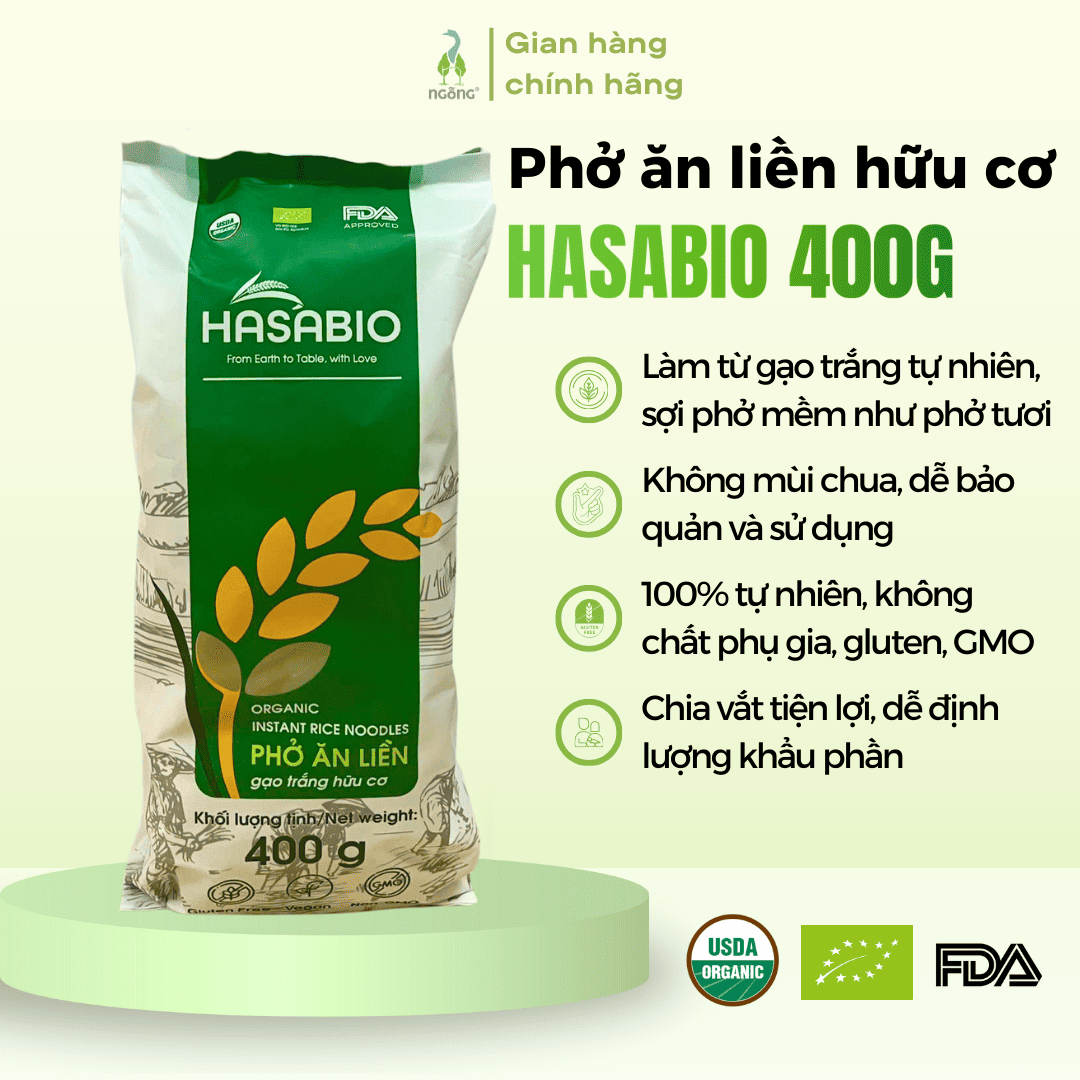 Phở ăn liền gạo trắng hữu cơ HASABIO 400g
