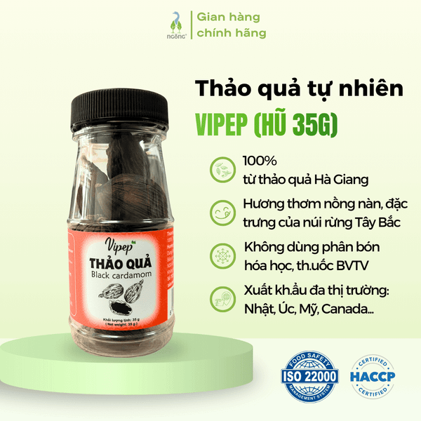 Thảo quả khô Vipep – gia vị truyền thống đặc trưng của núi rừng Tây Bắc, mang hương thơm nồng nàn, vị cay ấm dễ chịu. Không chỉ giúp món ăn thêm tròn vị, thảo quả còn được xem là vị thuốc quý hỗ trợ tiêu hóa, làm ấm cơ thể và tăng cường sức khỏe tự nhiên.