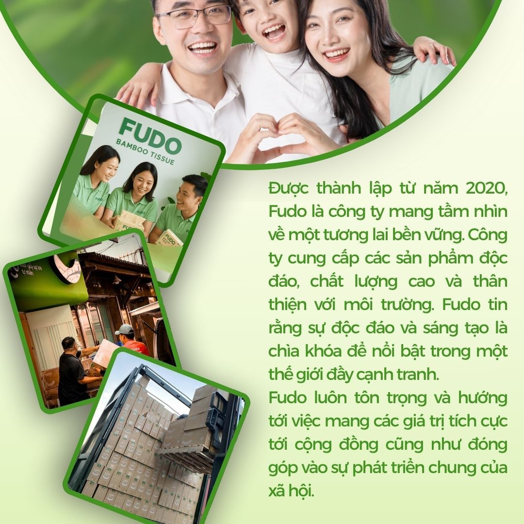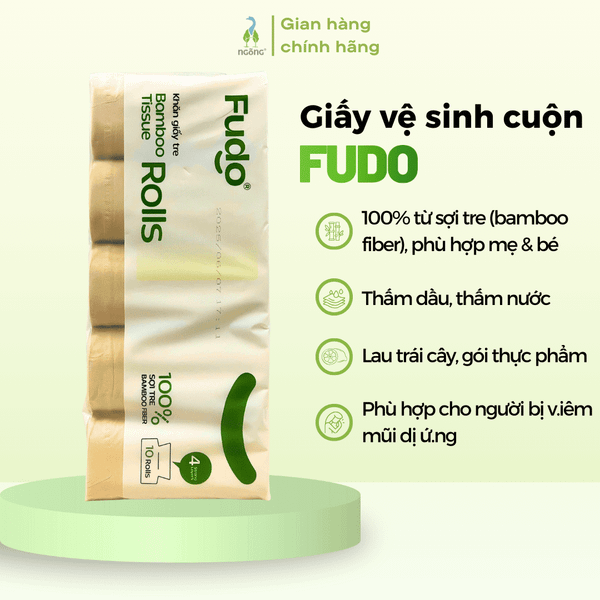 Giấy vệ sinh không lõi Fudo được làm từ 100% sợi tre tự nhiên, không tẩy trắng – không tạo mùi, đạt chứng nhận FDA & FSC an toàn tuyệt đối cho mẹ bầu, trẻ nhỏ và da nhạy cảm.