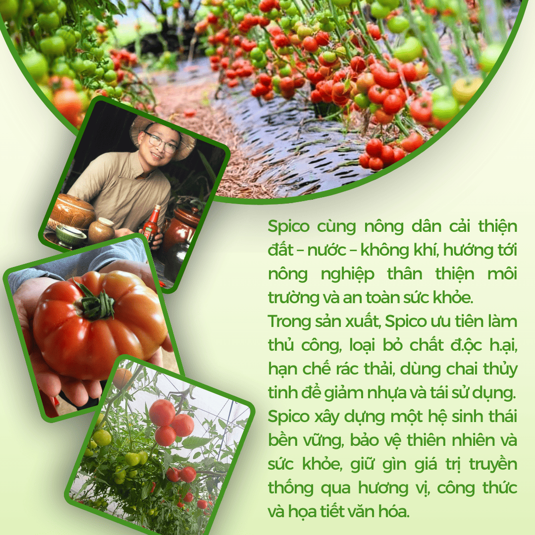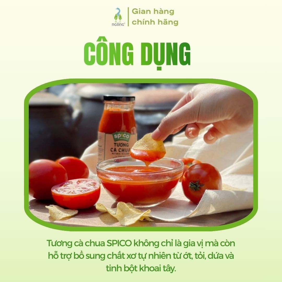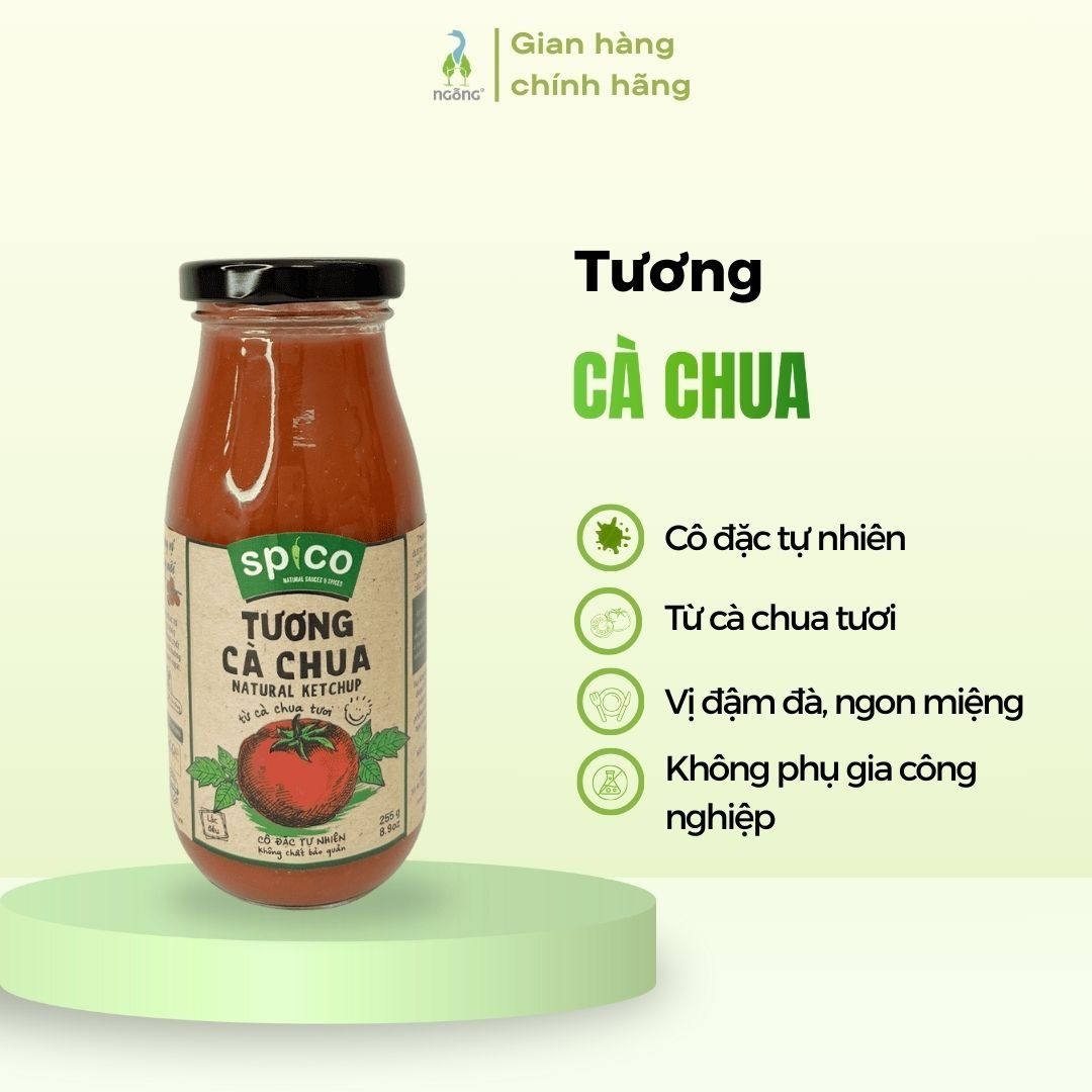 Sản phẩm được làm từ cà chua tươi cô đặc theo phương pháp thủ công truyền thống. Không chỉ vậy, Tương cà SPICO còn sử dụng nguyên liệu tự nhiên an toàn, không chất bảo quản, không phẩm màu. Hương vị tự nhiên, dậy vị chua ngọt nhẹ sẽ khiến bữa ăn gia đình bạn thêm tròn vị.