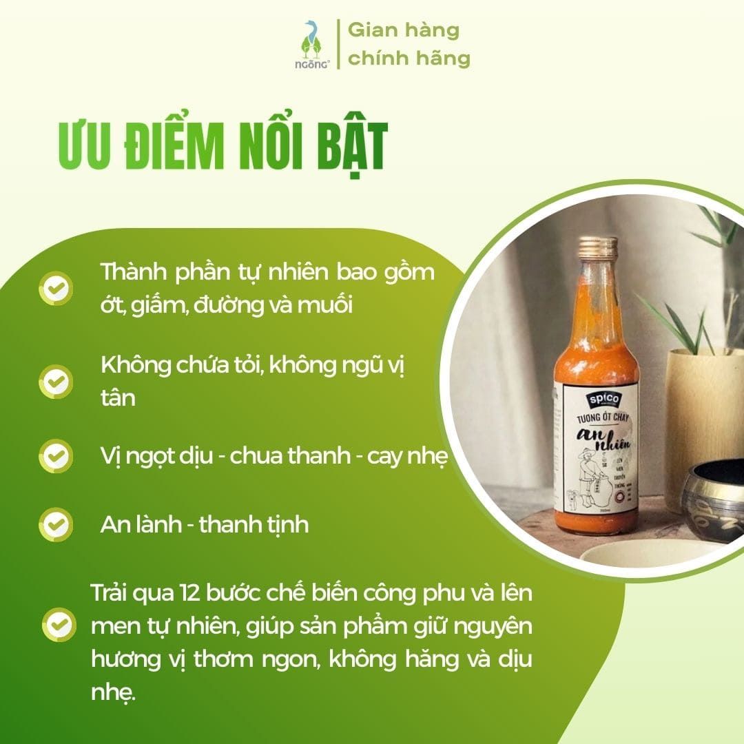 Tương ớt chay An Nhiên SPICO chai 330g – Đậm đà hương vị chay, thanh tịnh an nhiên!