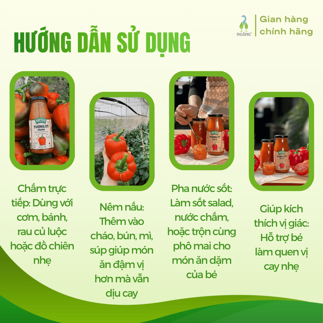 → Có vị cay nhẹ tự nhiên từ ớt chuông và cà chua, phù hợp cho bé từ 2 tuổi, không gây kích ứng vị giác.