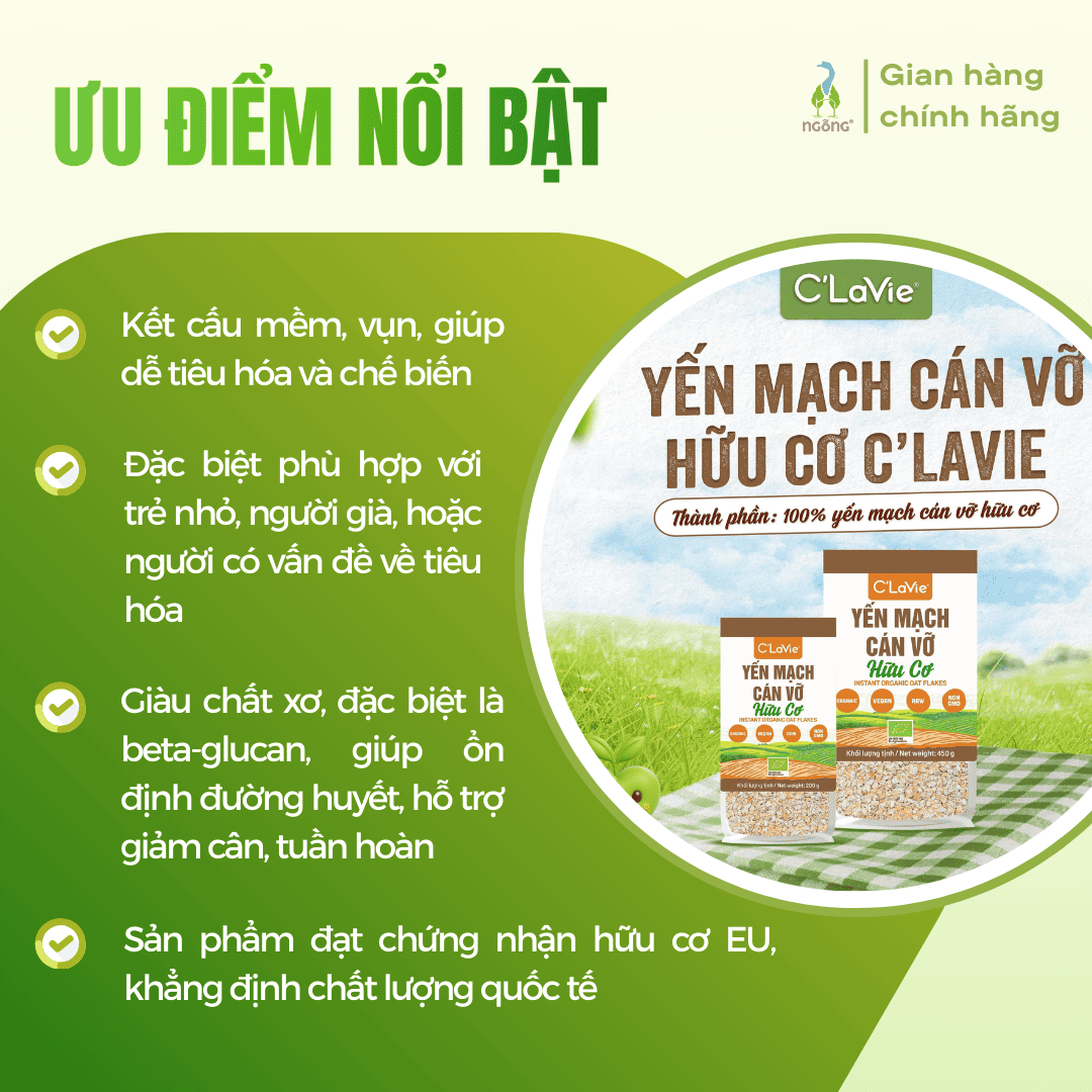 Yến mạch cán vỡ hữu cơ C’LaVie 450g – lựa chọn xanh, sạch và lành mạnh cho gia đình. Cảm ơn bạn đã tin tưởng mua sắm tại Ngỗng!